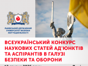 Всеукраїнський конкурс наукових статей ад’юнктів та аспірантів в галузі безпеки та оборони (м. Львів,...