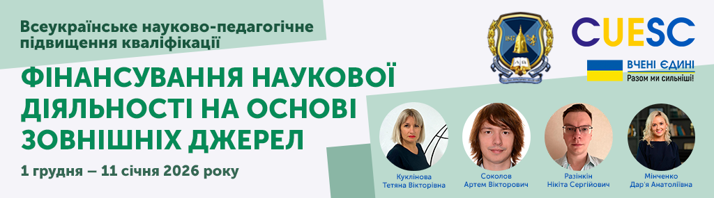 Увага! З 1 грудня по 11 січня 2026 року (включно), упродовж підвищення кваліфікації, учасники надсилають на електронну адресу advanced_training@cuesc.org.ua тези науково-методичної доповіді.