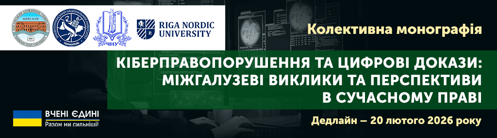 До участі в написанні колективної монографії запрошуються науковці, викладачі та аспіранти, які досліджують міжгалузеві виклики та перспективи в сучасному праві, зокрема кіберправопорушення та цифрові докази.