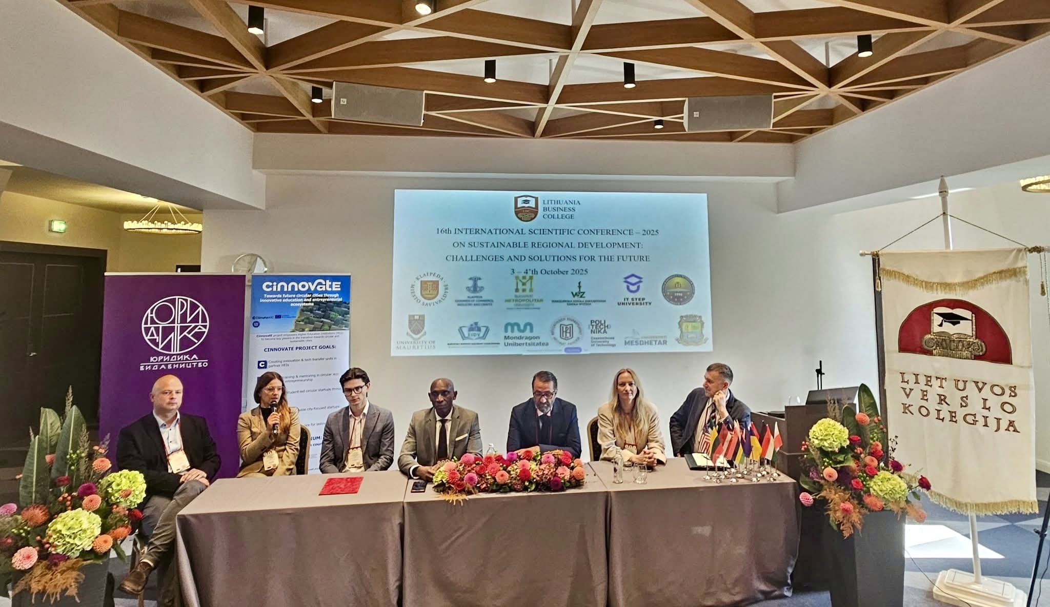 3–4 жовтня 2025 року в м. Клайпеда (Литва) була проведена XVI Міжнародна наукова конференція – 2025 з питань сталого розвитку регіонів: майбутні виклики та рішення. До організації цього заходу були залучені установи із різних держав (Литви, Угорщини, Польщі, України, Північної Македонії, Маврикію, Словаччини, Іспанії, Болгарії, Албанії). Зокрема, це: Литовський бізнес-коледж, Муніципалітет міста Клайпеда, Клайпедська торгово-промислова палата, Будапештський столичний університет, Варшавська вища школа управління, Університет IT STEP, Університет Тетови, Університет Маврикію, Європейський інститут післядипломної освіти, Університет Мондрагон, Південно-Західний університет «Неофіт Рильський», Ченстоховський політехнічний університет, Середземноморський університет Албанії, Львівський університет бізнесу і права.