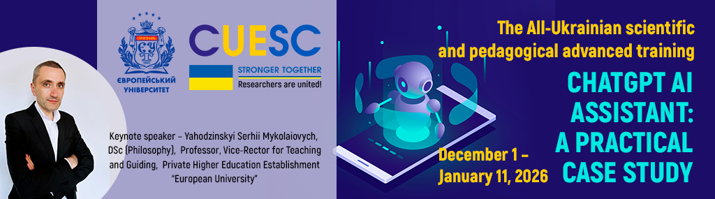 NB! From December 1 to January 11, 2026 (inclusively), during the advanced training, participants should send research- methodological abstracts to advanced_training@cuesc.org.ua.