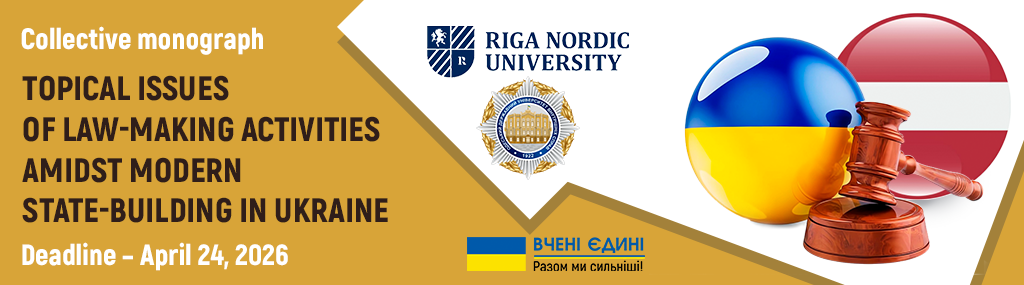 Contact person: Tiutiunnyk Tetiana Mykolaivna – Coordinator of scientific events and projects on juridical sciences.