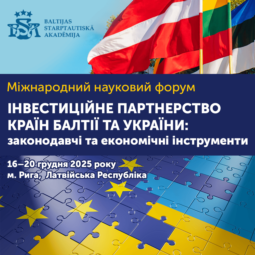 International Scientific Forum “Investment Partnership Between the Baltic States and Ukraine: Legislative and Economic Instruments” (Riga, the Republic of Latvia)