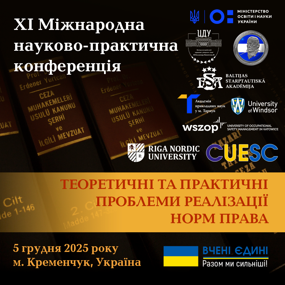 Address of the organising committee: Department of Sectoral Legal Sciences, Faculty of Law, Humanities and Social Sciences, Kremenchuk Mykhailo Ostrohradskyi National University, Pershotravneva st., 20, Kremenchuk, 39600, Poltava Oblast, Ukraine.