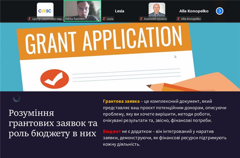 Окрему увагу було приділено типовим статтям витрат, правилам їх обґрунтування, допустимим і недопустимим витратам, а також поширеним помилкам, яких варто уникати під час підготовки бюджетної частини заявки. Лектор навів практичні приклади з реальних грантових проєктів і поділився рекомендаціями щодо підвищення прозорості, реалістичності та переконливості фінансового плану.