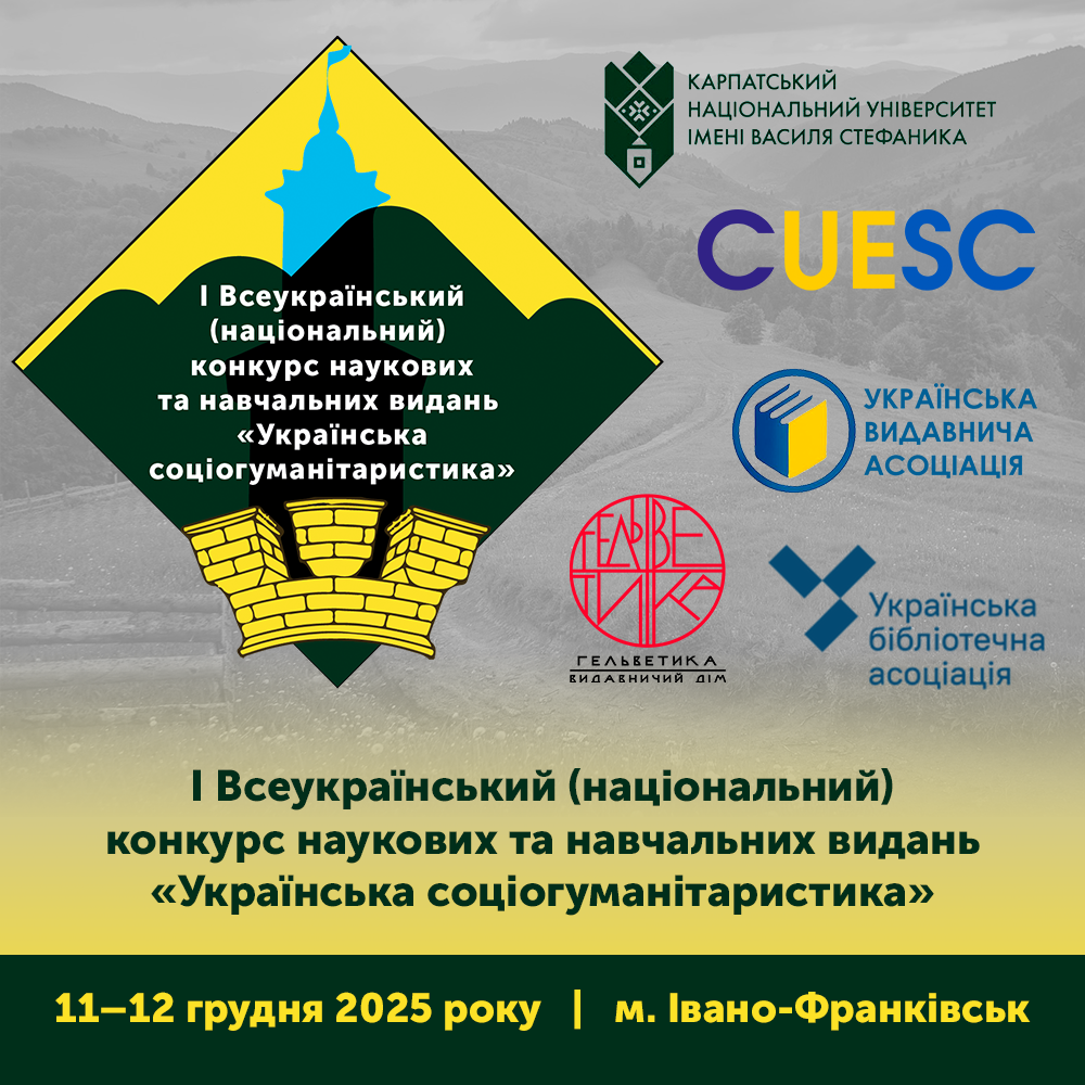 Останніми роками світ спостерігає, що російсько-українська війна стає більш жорстокою, кривавою та безжалісною. рф робить усе задля того, аби стерти з лиця землі Україну та українців. Нині дуже важливим є розвиток у всіх сферах людського життя суспільства, аби Україна вдосконалювалась та йшла до Перемоги. Саме тому Карпатський національний університет імені Василя Стефаника та Видавничий дім «Гельветика» прийняли рішення 19 вересня 2025 року започаткувати І Всеукраїнський (національний) конкурс наукових та навчальних видань «Українська соціогуманітаристика».