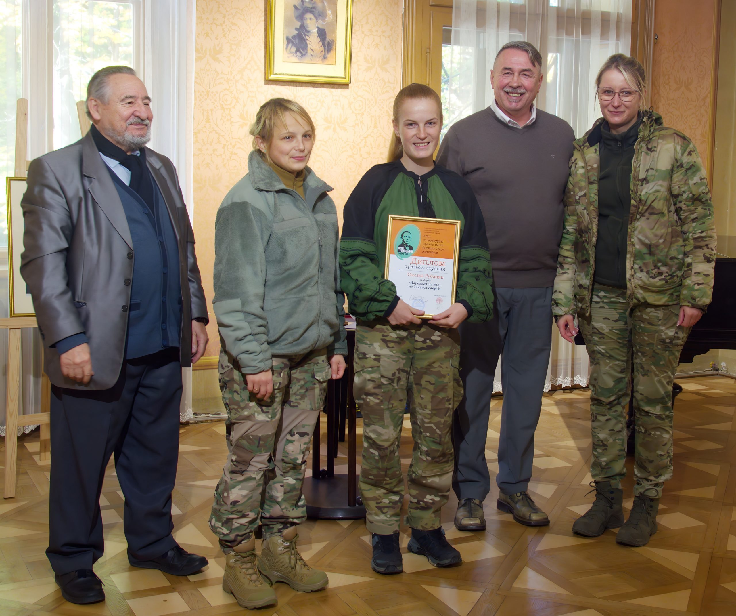 3) диплом третього ступеня присуджено 22-річній Оксані Рубаняк з Івано-Франківщини за збірку «Народжені у волі не бояться смерті». Авторка – військова, командир ударних безпілотних комплексів, справжня українська амазонка. Її поезія – це голос свободи, мужності та любові до Батьківщини.