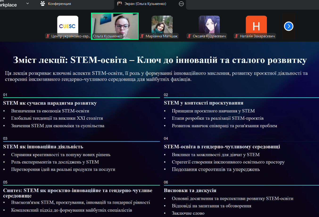 Тема лекції – «STEM-освіта в контексті проєктування, інноваційної діяльності та ґендерно-чутливого середовища».