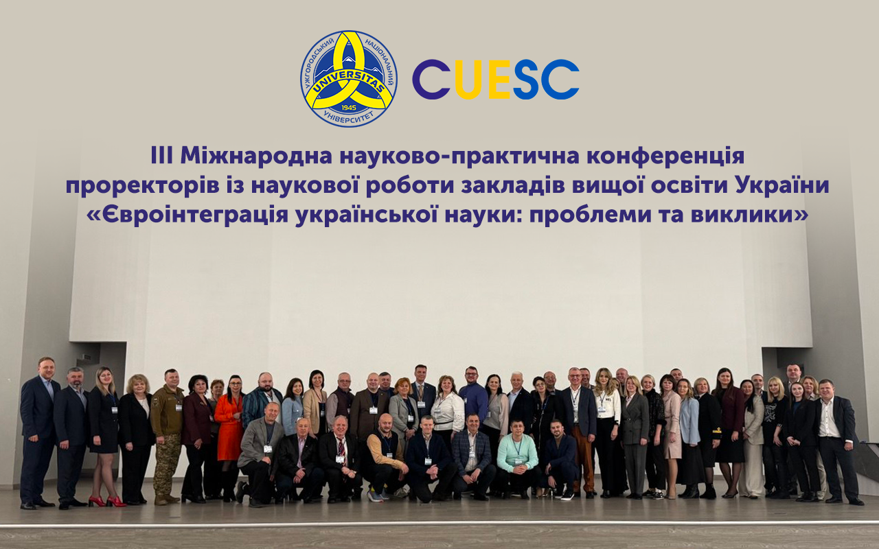 23–26 жовтня 2025 року на Закарпатті відбулася ІІІ Міжнародна науково-практична конференція проректорів із наукової роботи закладів вищої освіти України «Євроінтеграція української науки: проблеми та виклики», організована Центром українсько-європейського наукового співробітництва спільно з Ужгородським національним університетом.
